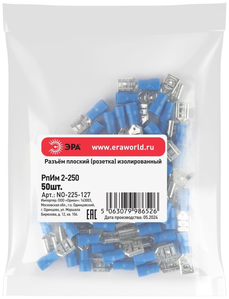 Полное описание товара Разъем плоский NO-225-127 РпИм 2-250 изолированный «розетка» (упаковка 50 штук) (ЭРА) Б0063368