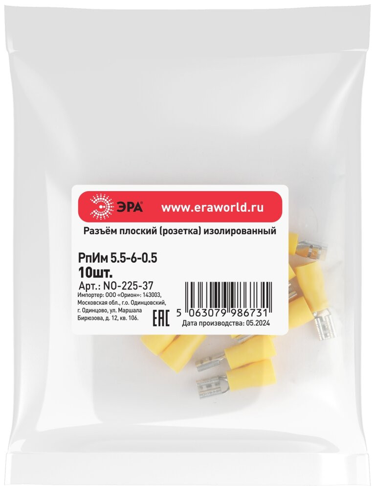 Полное описание товара Разъем плоский NO-225-37 РпИм 5.5-6-0.5 изолированный «розетка» (упаковка 10 штук) (ЭРА) Б0063361