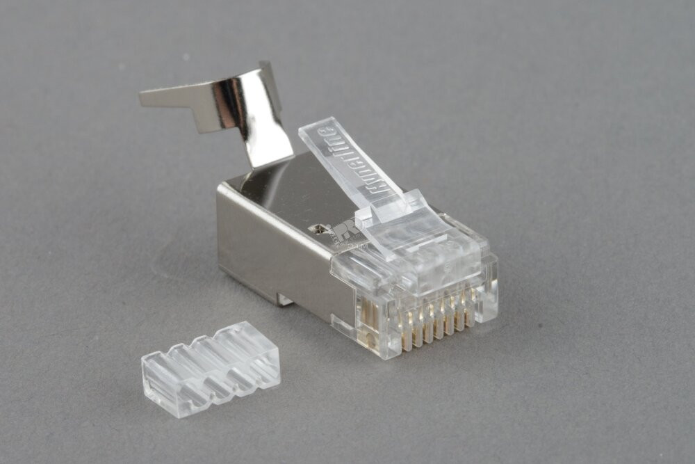 Разъем RJ-458P8C под витую пару категория 6 экранированный для жил 1.35-1.5 с оболочкой 10 шт (Hyperline) 49340