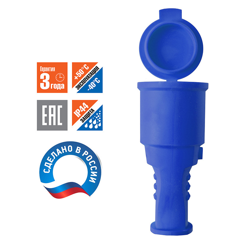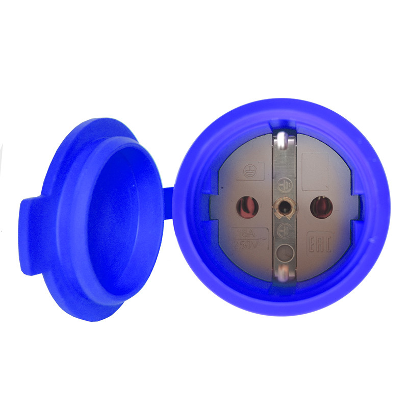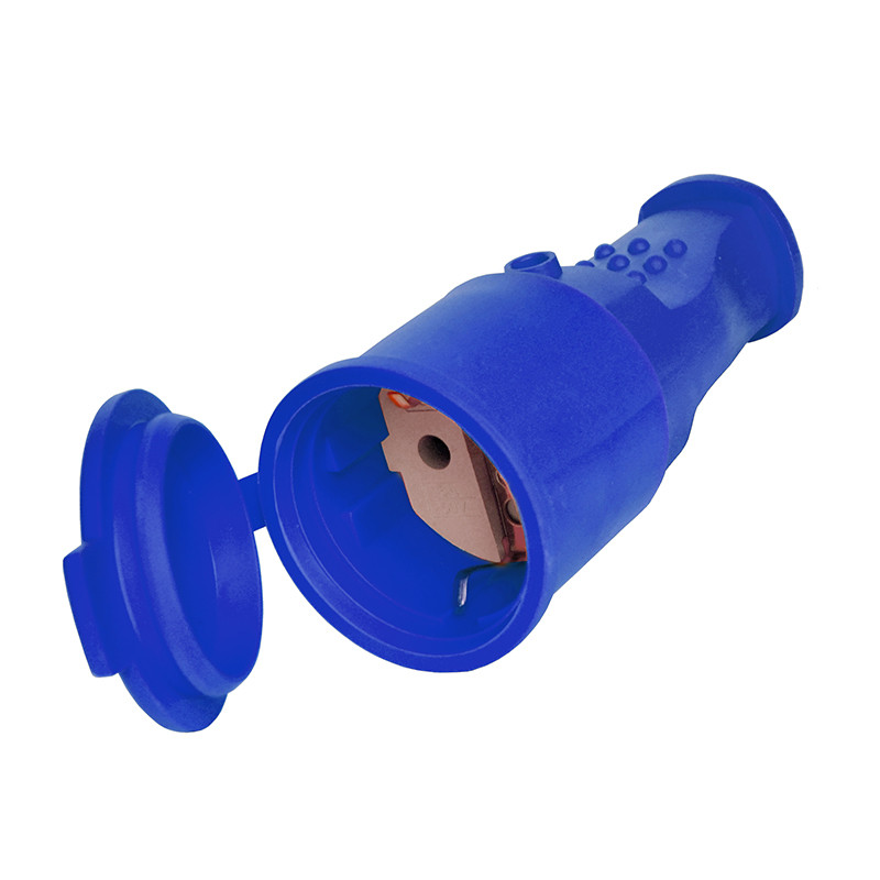 Полное описание товара Разъем штепсельный с/з каучук с заглушкой 16А 250В IP44 цвет синий еврослот (UNIVersal) 3049