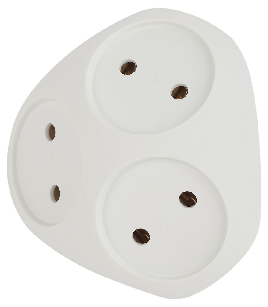 Полное описание товара Разветвитель электрический SPx-3-W на 3 розетки без заземления 10А белый (ЭРА) Б0053481