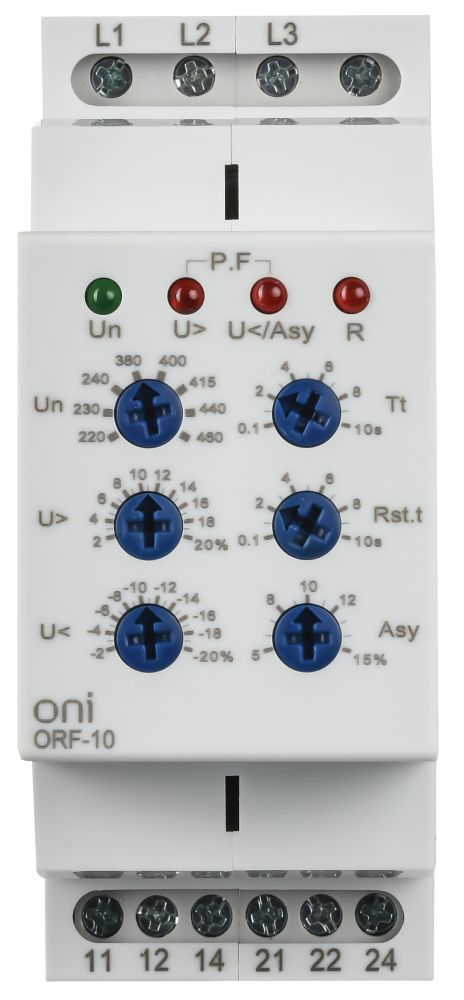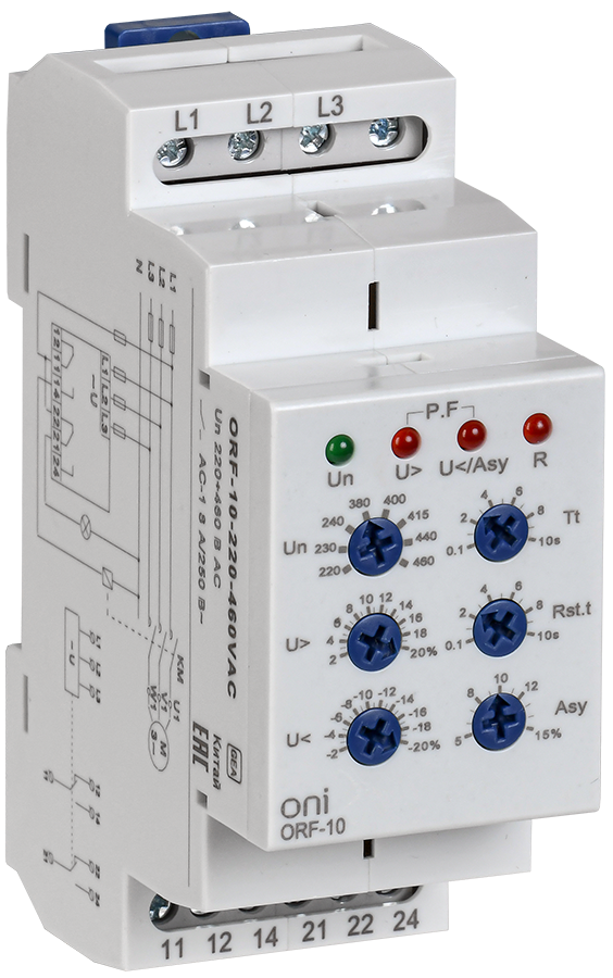 Полное описание товара Реле фаз ORF-10 трехфазное 2 контакта 220-460В AC (ONI) ORF-10-220-460VAC