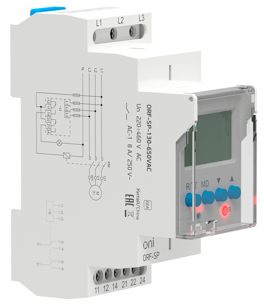 Полное описание товара Реле фаз ORF-SP трехфазный контакта 130-650В AC (ONI) ORF-SP-130-650VAC