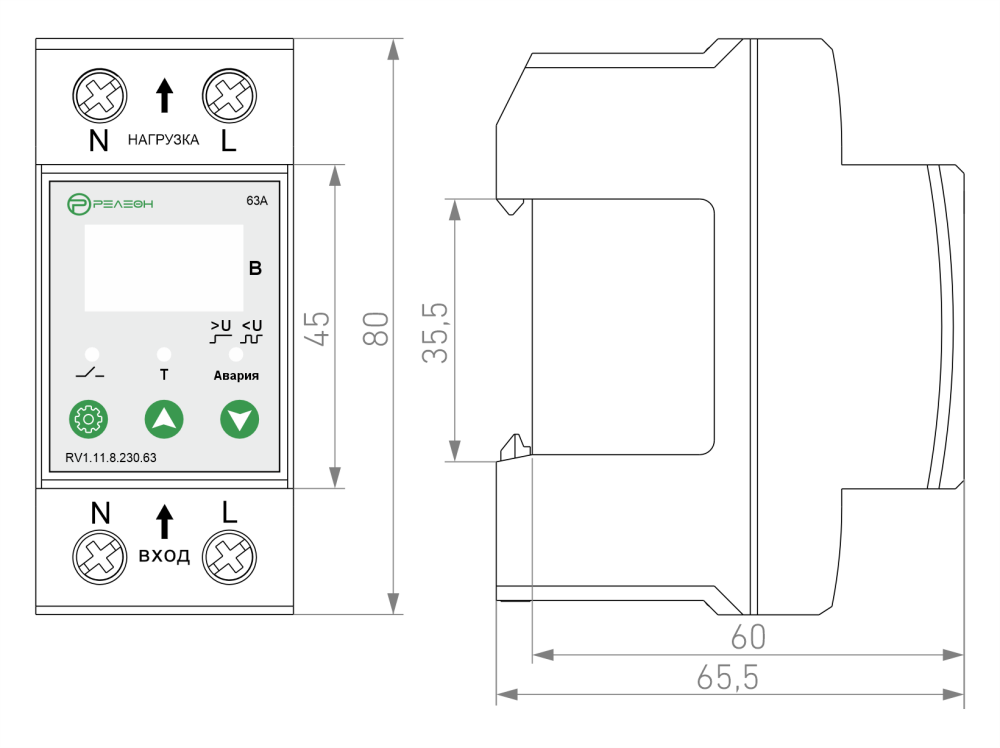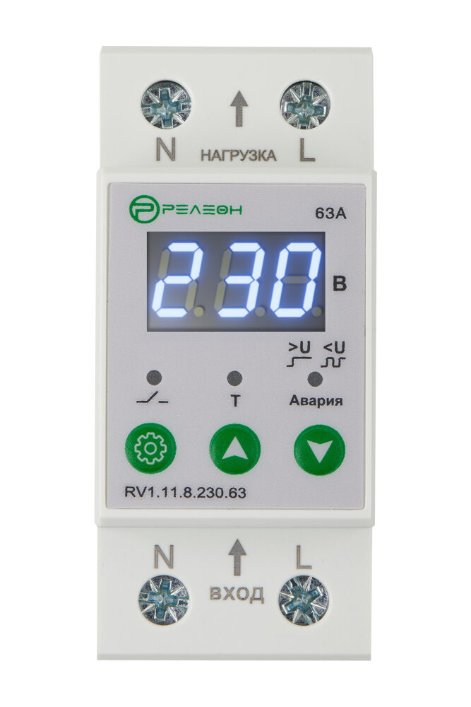 Полное описание товара Реле контроля напряжения 1L 230В AC 63А (Релеон) RV111823063