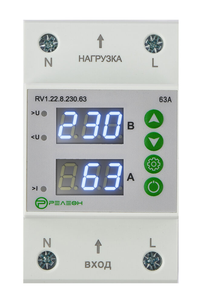 Реле контроля напряжения и тока L+N 230В AC 63А (Релеон) RV122823063