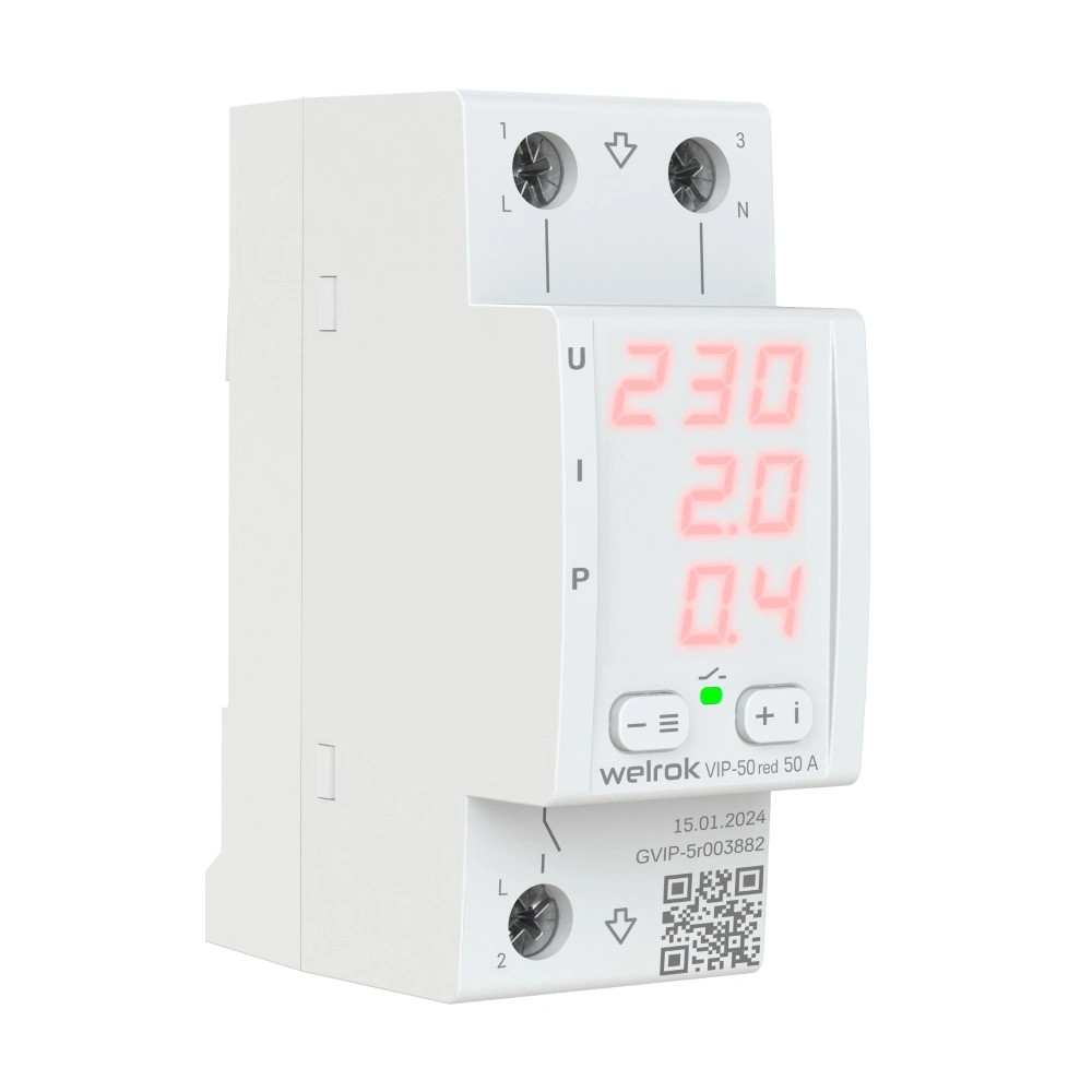 Многофункциональное реле VIP защищает оборудование от скачков и провалов напряжения, последствий обрыва нулевого провода и превышения тока или полной мощности.Отключает нагрузку, если напряжение, ток или мощность выходит за установленные пределы и автоматически включает нагрузку. 3 дополнительных преимущества, которые дает контроль по току в реле: 1. Возможность точного ограничения мощности нагрузки. 2. Возможность равномерно распределить нагрузку по фазам. 3. Визуальный контроль за текущим состоянием нагрузки. VIP- компактное реле на 2 модуля с мощным функционалом и корпусом, не поддерживающим горение: Скорость срабатывания реле - не более 0,03 сек. TrueRMS для точного измерения напряжения Для уменьшения количества срабатываний: Защита от частых срабатываний Регулируемый гистерезис Регулируемая задержка включения нагрузки Профессиональная модель отключения при выходе напряжения за пределы