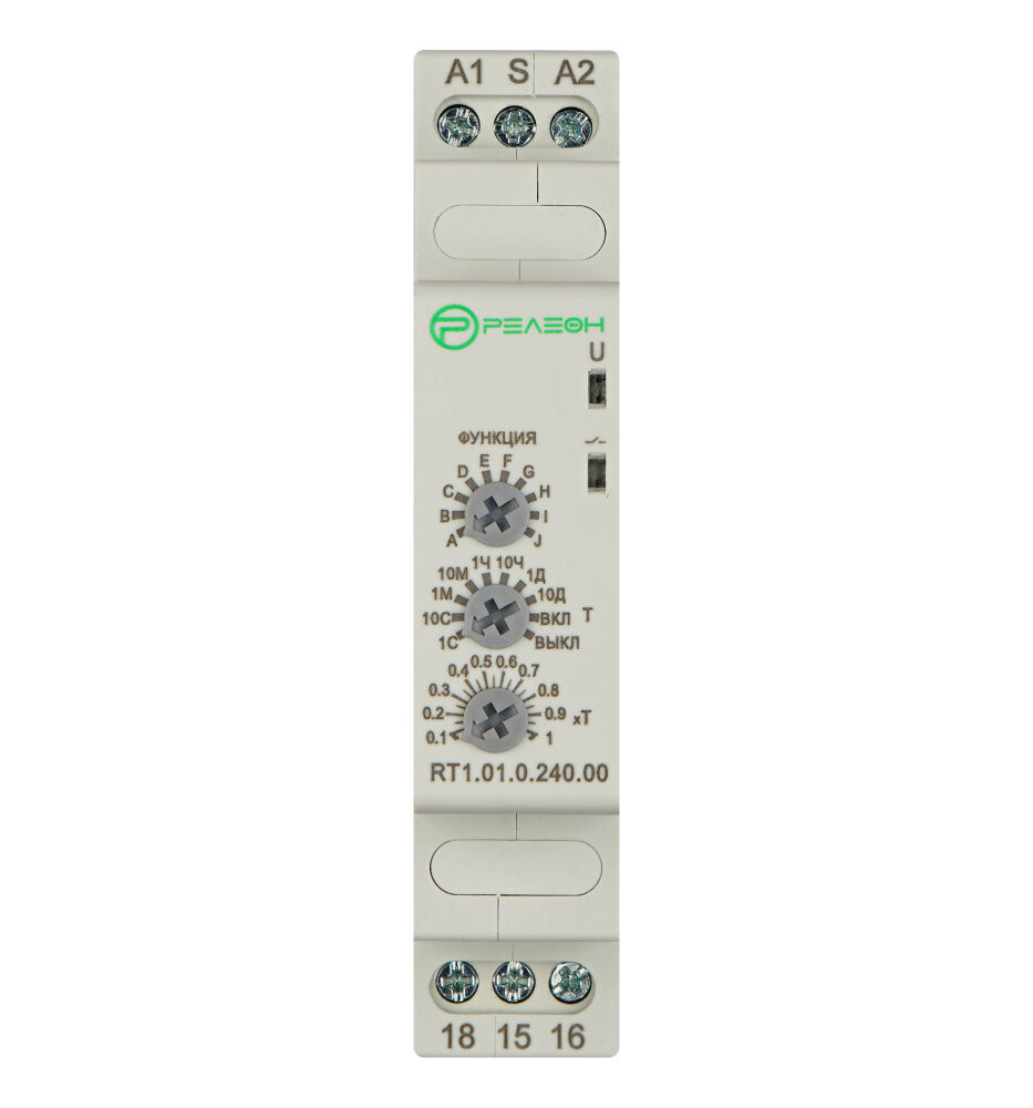 Реле времени RT1 предназначено для управления нагрузкой с заданной пользователем выдержкой по времени с выбранной функцией последовательности. Реле имеет 10 различных функций (A,B,C,D,E,F,G,H,I,J). Функции описаны в преимуществах. С диаграммами функций можно ознакомиться в изображениях товара.