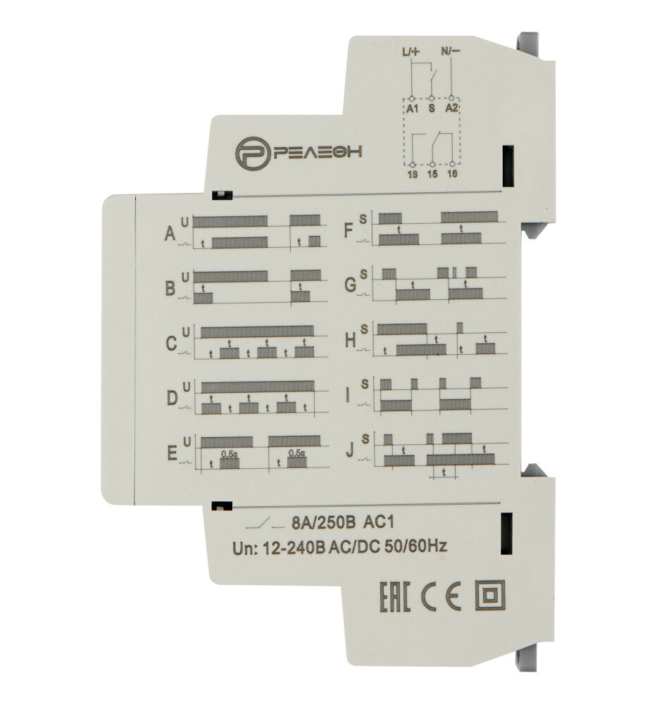 - Преимущества: A - Задержка включения. B - Импульс при включении.|C - Симметричный повтор цикла (начал. импульс ВЫКЛ). D - Симметричный повтор цикла (начал. импульс ВКЛ).|E - Задержка формирования импульса 0,5 сек.|F - Импульс по управляющему сигналу.|G - Задержка включения по сигналу с последующей задержкой выключения.|H - Задержка включения и отключения с управляющим сигналом.|I - Импульсный режим. J - Задержка отключения по сигналу с продлением.
