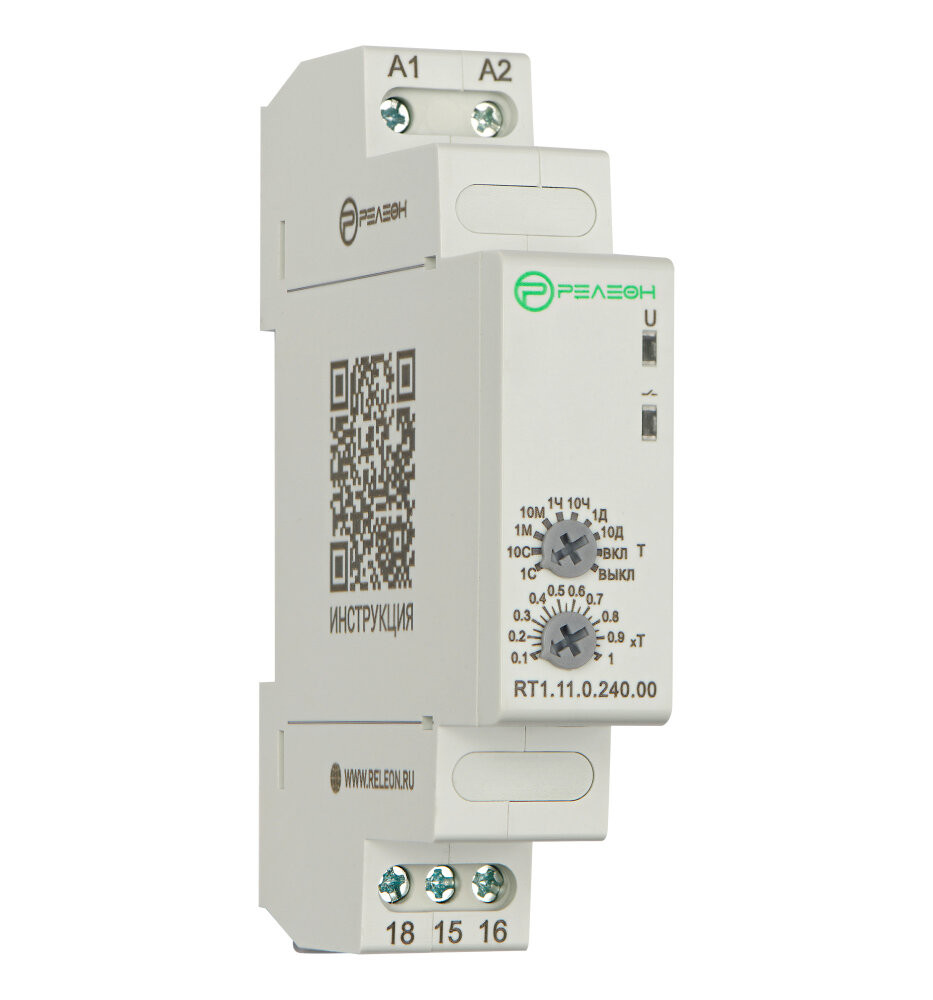 Полное описание товара Реле времени задержка включения, 1 переключающий контакт 8А 24-240 AC/DC (Релеон) RT111024000