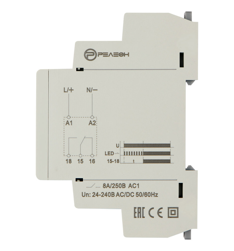 Реле времени задержка включения, 1 переключающий контакт 8А 24-240 AC/DC (Релеон) RT111024000