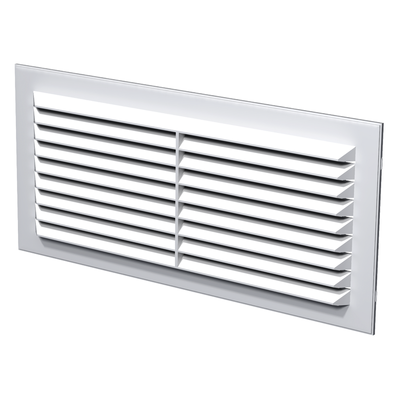 Решетка изготовлена из высококачественного пластика, с одноэлементной конструкцией. Крепление при помощи шурупов непосредственно к дверному полотну или подоконнику. Оснащена защитной сеткой от насекомых. Используется для декоративного оформления выходов приточных или вытяжных вентиляционных систем бытовых, общественных и промышленных зданий, для правильного распределения воздушного потока внутри помещений.