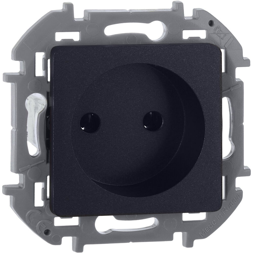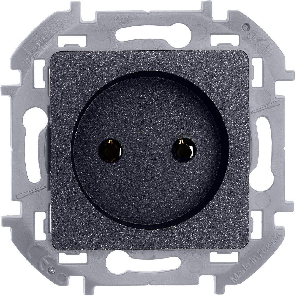 Розетка без заземления для скрытого монтажа Inspiria, цвет ''Антрацит'', максимальный ток 16А, напряжение ~250В, максимальная мощность 3680Вт, винтовые зажимы. Применяется для присоединения однофазных электрических потребителей к сети переменного тока в зданиях с проводкой без заземления (без защитного проводника).