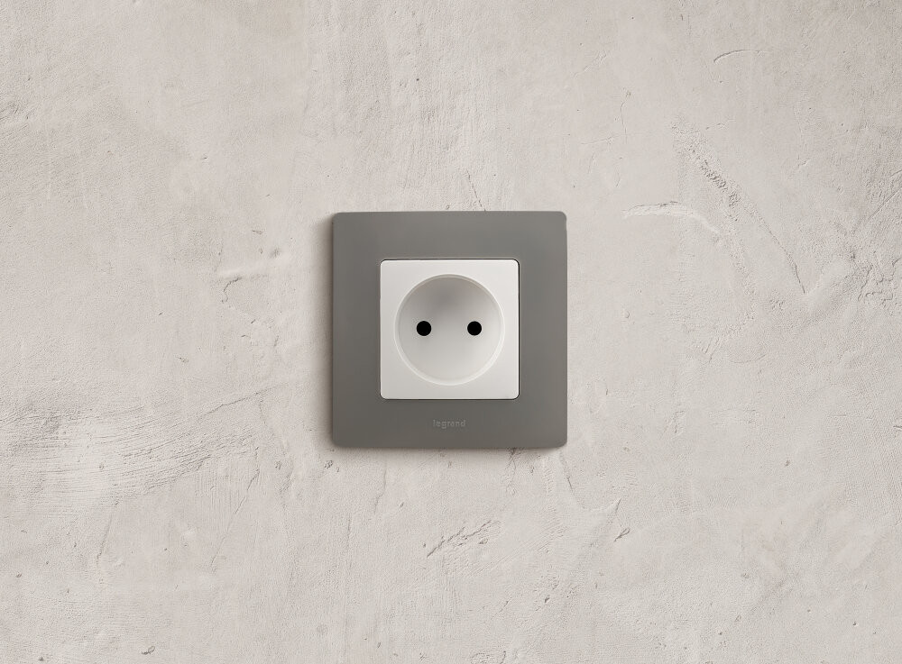 Розетка без заземления ETIKA для скрытого монтажа. Максимальный ток 16 А, максимальная мощность 3680 Вт. Применяется в зданиях с проводкой без заземления (без защитного проводника).