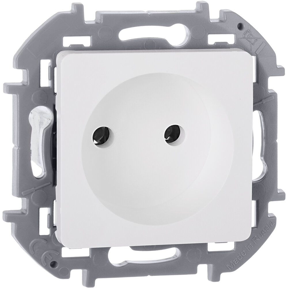 Розетка без заземления для скрытого монтажа Inspiria, цвет ''Белый'', максимальный ток 16А, напряжение ~250В, максимальная мощность 3680Вт, винтовые зажимы. Применяется для присоединения однофазных электрических потребителей к сети переменного тока в зданиях с проводкой без заземления (без защитного проводника).