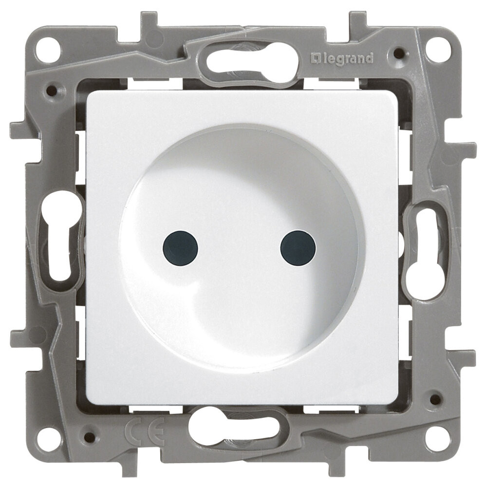 Розетка без заземления ETIKA для скрытого монтажа. Применяется в зданиях с проводкой без заземления (без защитного проводника). Рекомендуются к применению в квартирах и помещениях с детьми. Шторки осуществляют защитную функцию путём ограничения доступа к токоведущим контактам. Доступ открывается только при подключении вилки.