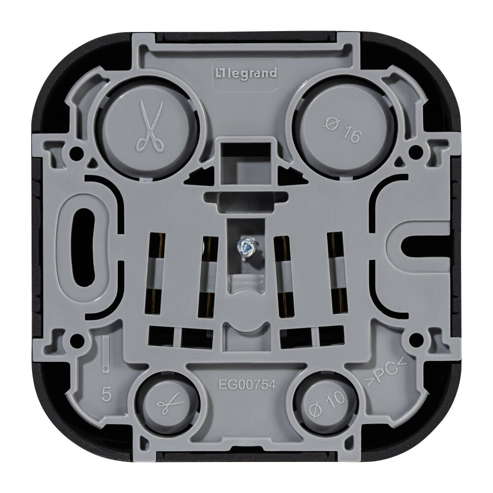 - Преимущества: Современный формат накладного монтажа|Механизм изготовлен из высококачественного поликарбоната, не проводит электрический ток, не поддерживает горение|Простое выравнивание изделий при установке в ряд, благодаря специальной форме основания|Корпус ударопрочный из пластичного полипропилена, стойкого к внешним воздействиям|Перфорация на корпусе для безошибочного вырезания отверстий при монтаже открытой проводки|В основании преднарезаны 4 отверстия для подвода кабеля при монтаже скрытой проводки