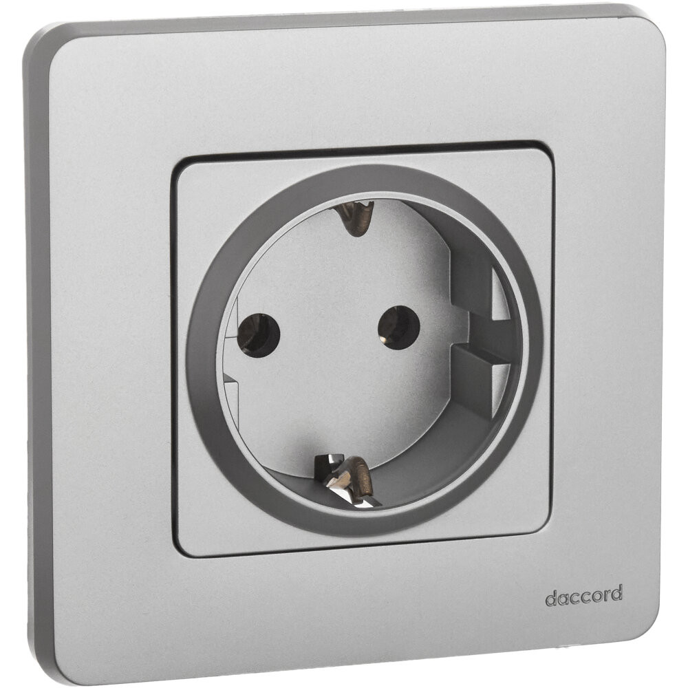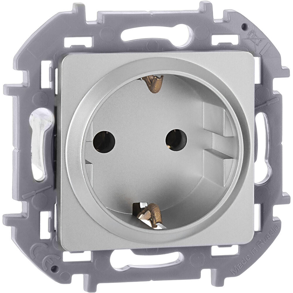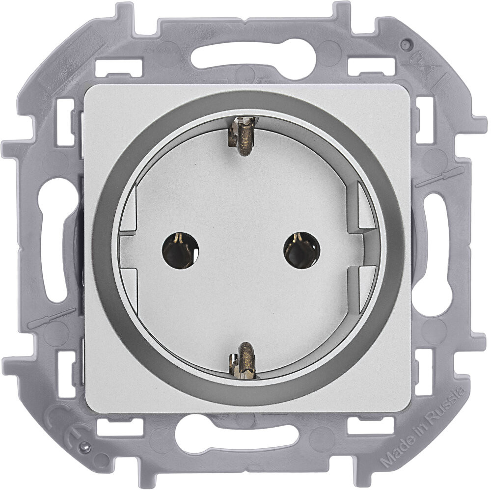 Розетка с заземлением для скрытого монтажа Inspiria, цвет ''Алюминий'', максимальный ток 16А, напряжение ~250В, максимальная мощность 3680Вт, винтовые зажимы. Применяется для присоединения однофазных электрических потребителей к сети переменного тока в зданиях с проводкой с заземлением (с защитным проводником).