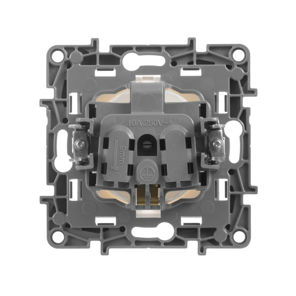 - Преимущества: Контактная группа изготовлена из латуни CuZn37, имеет высокую степень упругости и сохраняет плотный контакт с вилкой, при длительной эксплуатации|Скоба заземления имеет особый профиль для большей прочности|Лицевая панель крепится на защелках|Изготовлена из прочного глянцевого поликарбоната, стойкого к механическим воздействиям, выгоранию и загрязнениям|Зажимы для присоединения проводников винтовые Все токоведущие части розетки имеют защиту от случайного прикосновения|Острые крепёжные лапки с широким углом раскрытия, обеспечивают надёжную фиксацию в монтажной коробке