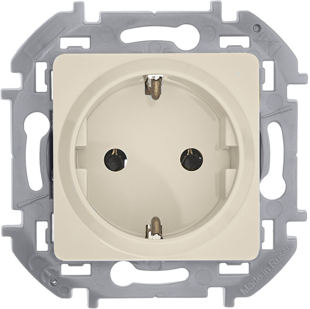 Розетка с заземлением для скрытого монтажа Inspiria, цвет ''Слоновая кость'', максимальный ток 16А, напряжение ~250В, максимальная мощность 3680Вт, винтовые зажимы. Применяется для присоединения однофазных электрических потребителей к сети переменного тока в зданиях с проводкой с заземлением (с защитным проводником).
