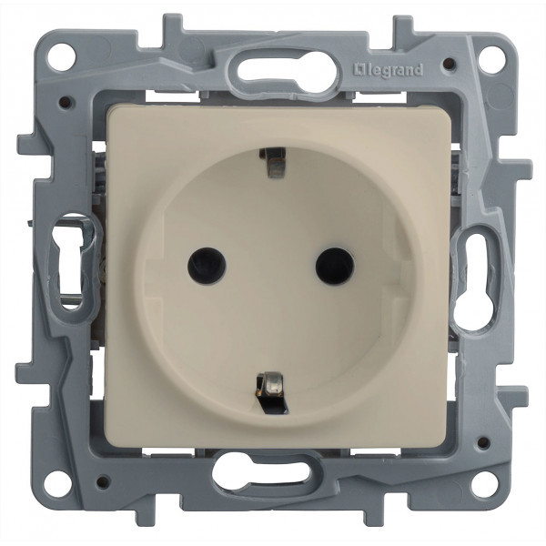 Розетка 1-местная с заземлением с защитными шторками 16А 250В слоновая кость ETIKA (IEK) 672324