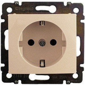 Розетка с заземлением с защитными шторками VALENA для скрытого монтажа. Максимальный ток 16 А, максимальная мощность 3680 Вт. Применяется в зданиях, оборудованных для повышения безопасности проводкой с заземлением (с защитным проводником). Рекомендуются к применению в помещениях с детьми. Шторки осуществляют защитную функцию путём ограничения доступа к токоведущим контактам. Доступ открывается только при подключении вилки.