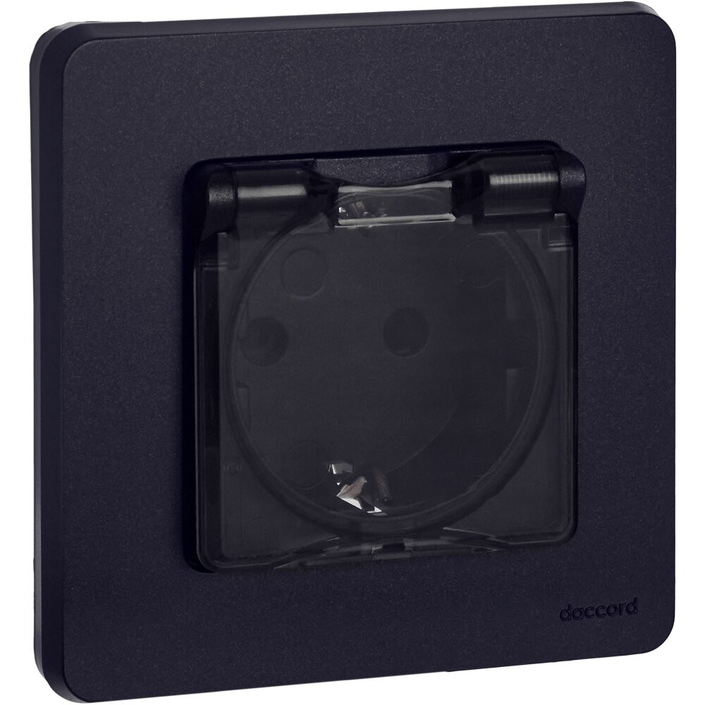 Полное описание товара Розетка 1-местная с заземлением с защитными шторками и крышкой 16А IP44 антрацит INSPIRIA (IEK) 673743