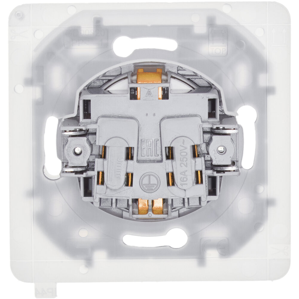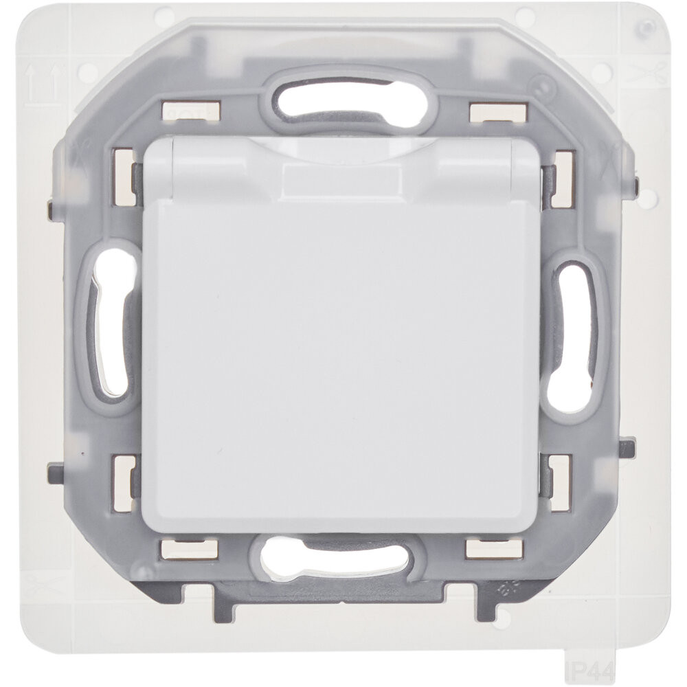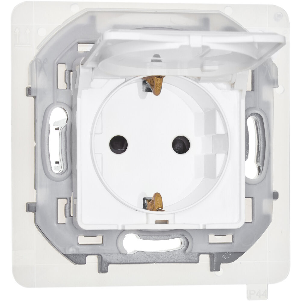 Розетка с заземлением, защитной крышкой и интегрированными защитными шторками для скрытого монтажа Inspiria, степень пылевлагозащиты IP44, цвет ''Белый'', номинальный ток 16А, напряжение ~250В, максимальная мощность 3680 Вт, винтовые зажимы. Применяется для присоединения однофазных электрических потребителей к сети переменного тока в зданиях с проводкой с заземлением (с защитным проводником). Предназначена для установки в местах с повышенной влажностью. Оснащена интегрированными шторками, которые защищают детей и других пользователей от удара электрическим током.