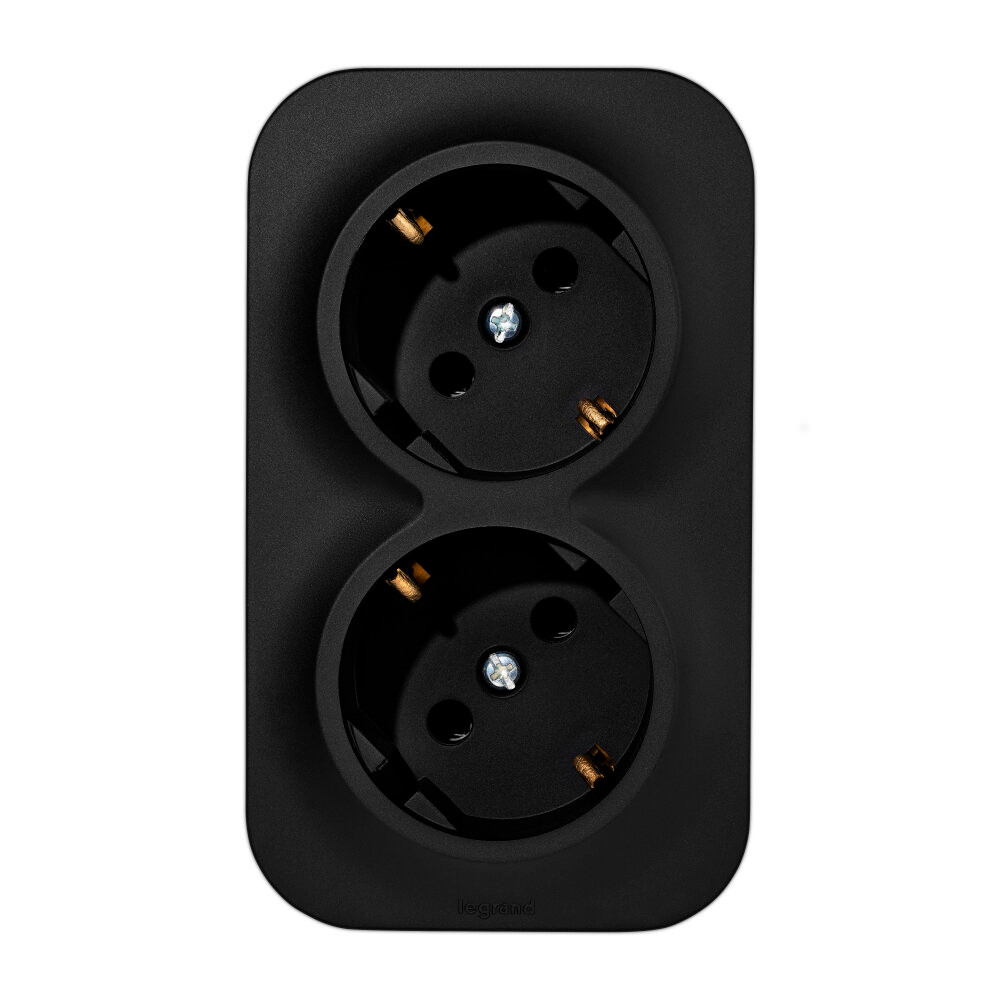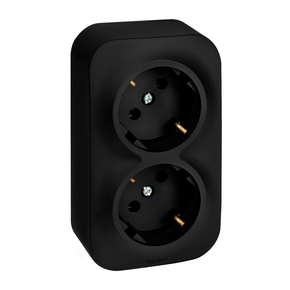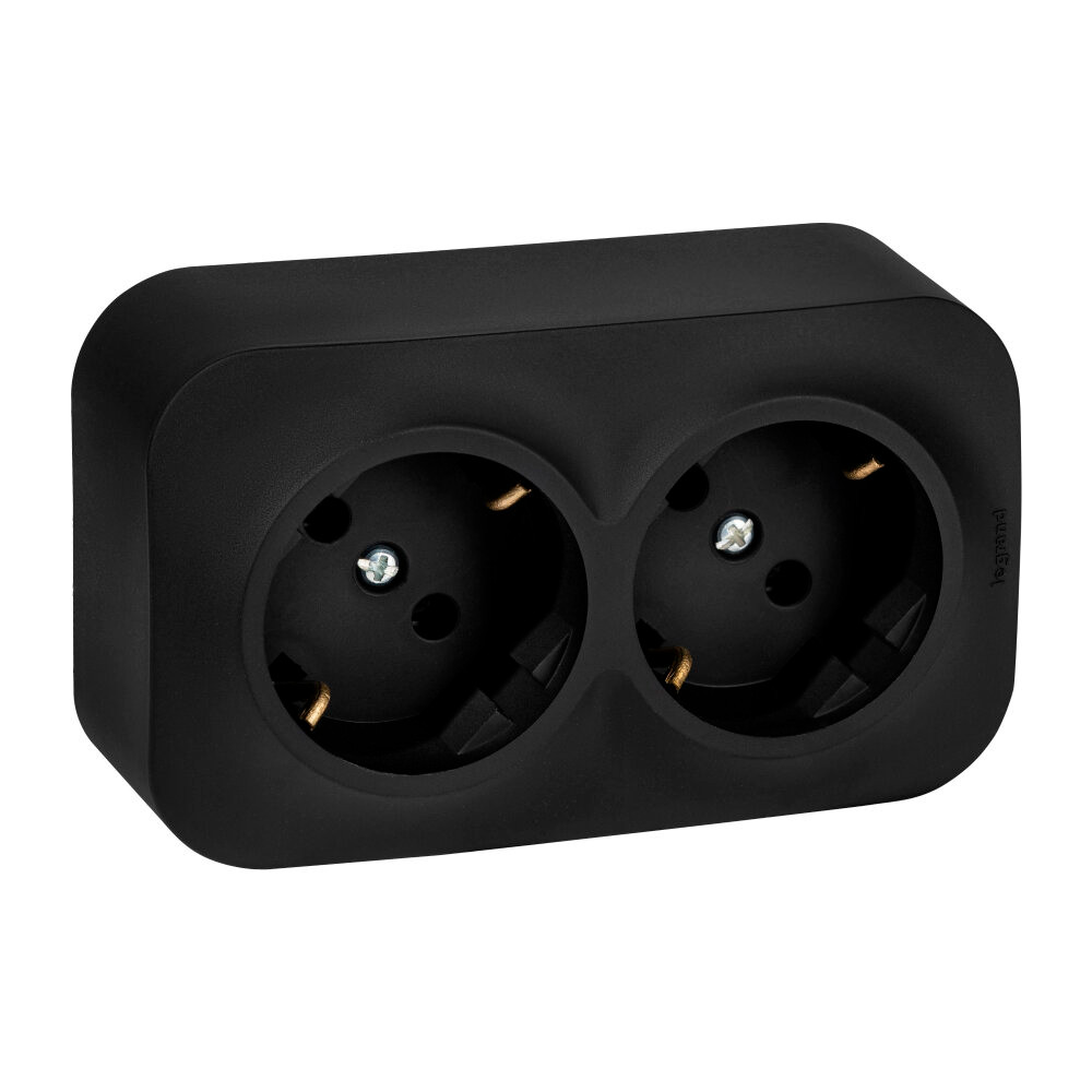 Полное описание товара Розетка 2-местная для открытой установки с заземлением без защитных шторок с предварительным подключением 16А черный матовый QUTEO (IEK) 782470