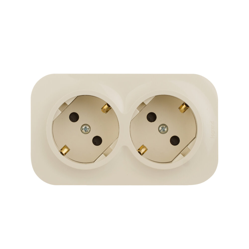 Полное описание товара Розетка 2-местная для открытой установки с заземлением с защитными шторками с предварительным подключением 16А слоновая кость QUTEO (IEK) 782267