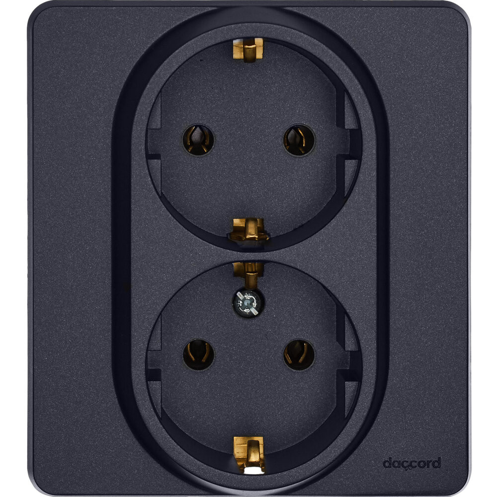 Розетка двойная с заземлением для скрытого монтажа Inspiria, цвет Антрацит, максимальный ток 16А, напряжение 250В, максимальная мощность 3680Вт, винтовые зажимы. Применяется для присоединения однофазных электрических потребителей к сети переменного тока в зданиях с проводкой с заземлением (с защитным проводником). Позволяет компактно разместить две розетки в одном установочном месте.