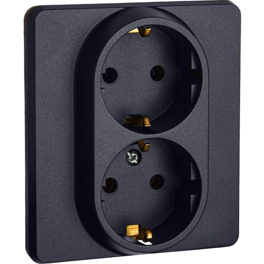 Розетка 2-местная с заземлением без защитных шторок 16А в сборе антрацит INSPIRIA (IEK) 673753