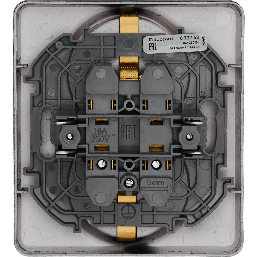 - Преимущества: "Компактный корпус ""моноблок"" с интегрированной рамкой предназначен для 1 установочного места|Без возможности многопостового монтажа|Контактная группа изготовлена из высококачественной латуни CuZn37, имеет высокую степень упругости и сохраняет плотный контакт с вилкой при длительной эксплуатации|Зажимы для присоединения проводников винтовые П-образной формы для исключения бокового выдавливания провода|В зажимах установлены качественные винты с никель-цинковым напылением для надежного резьбового соединения даже при чрезмерных моментах затяжки|Защитный контакт с широким основанием и специальным профилем для упругости при подключении/отключении и плотного контакта с вилкой|Лицевая панель крепится на винтахИзготовлена из прочного поликарбоната, стойкого к механическим воздействиям, выгоранию и загрязнениям"
