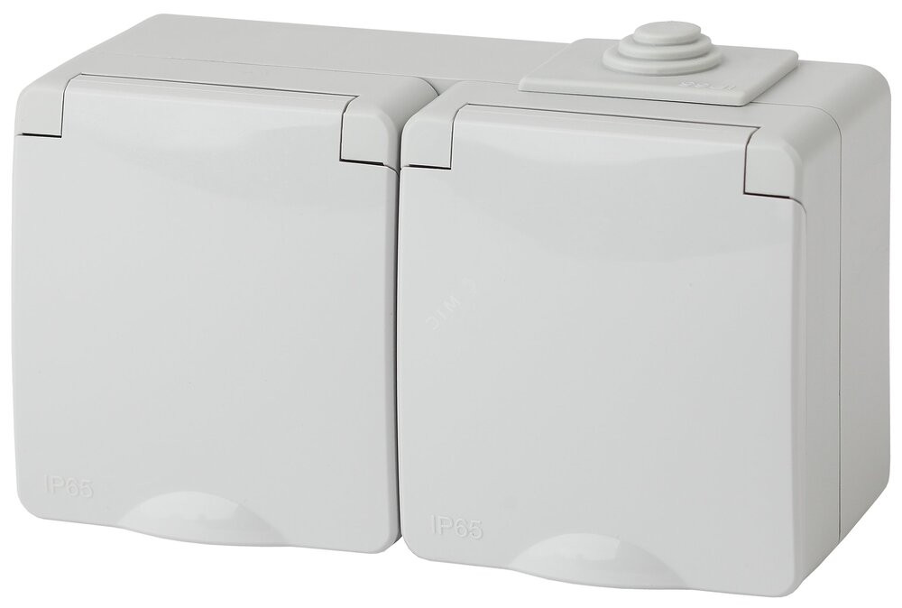Розетка 2х2P+E гориз. IP65, 16A-250В, ОУ, Эра Эксперт, серый, 11-2603-03 (ЭРА) Б0035991