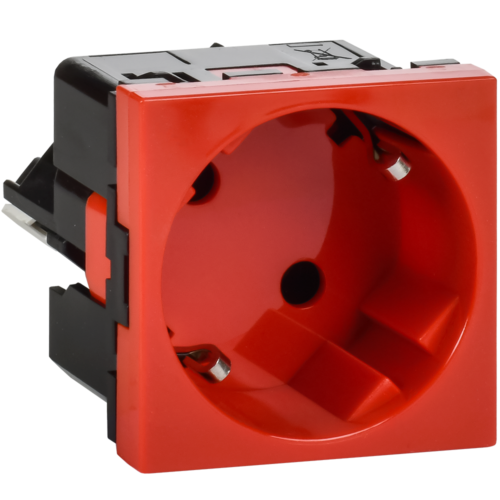 Розетка электрическая штепсельная с безвинтовыми зажимами предназначена для присоединения однофазных электрических потребителей к сети переменного тока напряжением 250В~ и частотой 50/60 Гц. Розетка поставляется с лицевой панель и устанавливаются в кабель-каналы DLP и Metra посредством соответствующих суппорт-рамок и в систему организации рабочих мест (лючки и колонны). Цвет: красный.