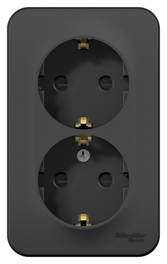 Розетка Systeme Electric (ранее Schneider Electric) BLANCA (антрацит, открытой установки) двухместная, с заземлением, шторками и изолирующей пластиной предназначена для сетей до 250В, на ток до 16А. Двухместная розетка позволяет подключить два устройства в одном месте. Шторки и заземление обеспечивают дополнительную безопасность при косвенном прикосновении.