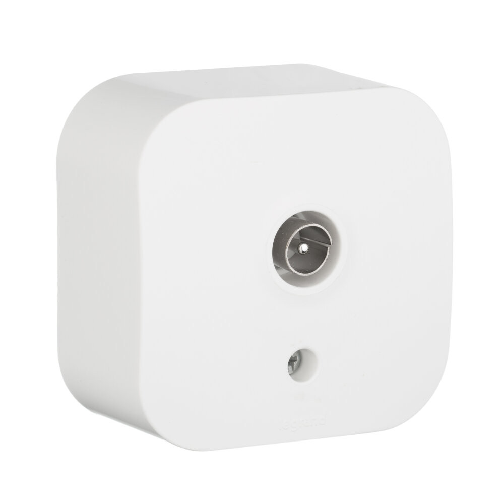 ТВ-розетка тип ''звезда'' QUTEO. Используется для подключения одного ТВ приемника к антенне, а также для организации телевизионной сети по схеме ''звезда'', когда к каждому телевизору прокладывается своя линия от источника сигнала.