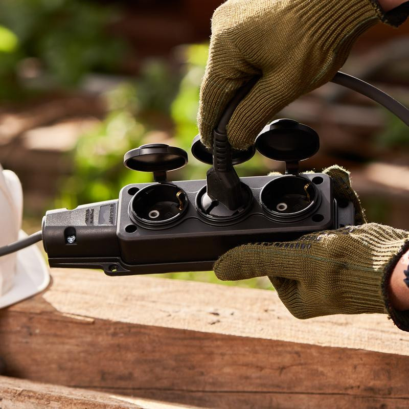 Влагозащищенная розетка предназначена для подключения бытовых и профессиональных приборов к электросети. Разработана для использования в сложных эксплуатационных условиях с высокой влажностью. Широко применяется в быту, на производстве и в строительстве. Может быть использована в переносном или стационарном варианте. Степень защиты IP54 позволяет использовать розетку для организации электропитания под открытым небом, а в дождь – под навесом. Не допускается погружение в воду. Допускается присоединение трех вилок одновременно с суммарным максимальным током по ним 16 А. Каждое розеточное место оснащено защитной крышкой. Для обеспечения безопасности детали, соприкасающиеся с токоведущими частями выполнены из огнеупорного материала, устойчивого к температуре до +850 градусов. Ударопрочный разборный корпус выполнен из каучука - устойчив к ударам, вибрациям и другим механическим воздействиям.