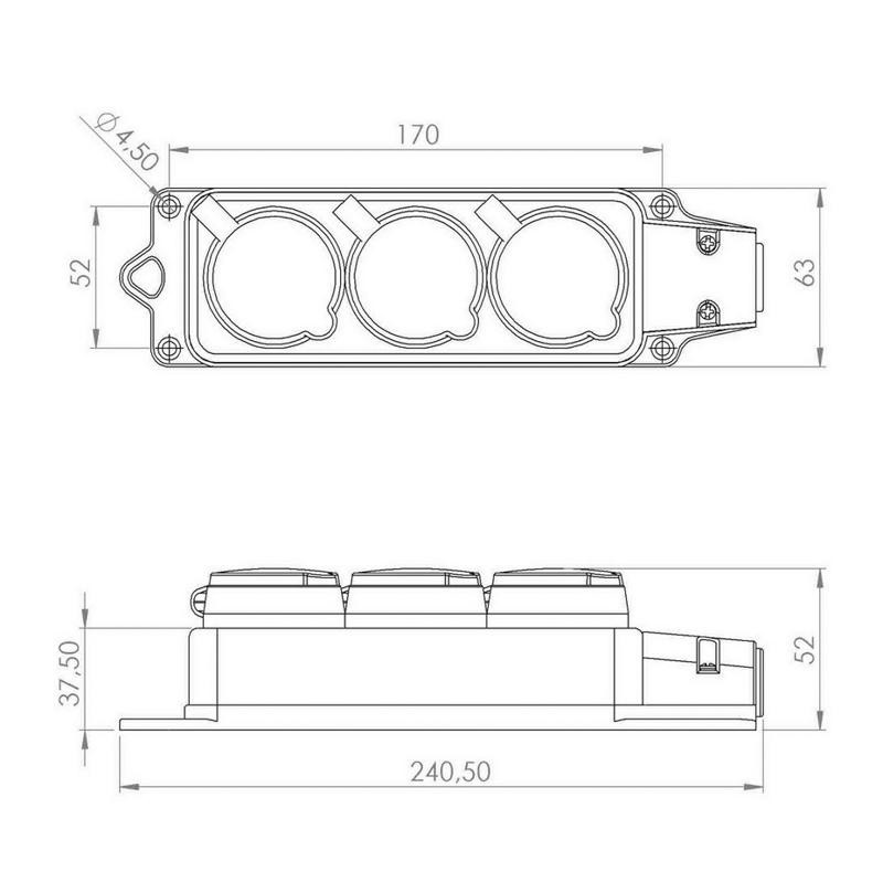 - Дополнительная информация: Для крепления к поверхности предусмотрены специальные отверстия. Заземление есть. Сечение проводников 0,75-2,5 мм2. Контактная группа MS-58 (латунь). Тип полюсов 2Р+РЕ.