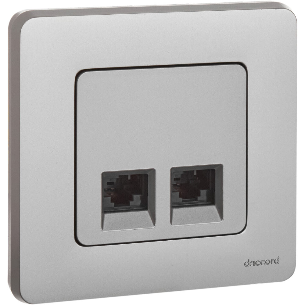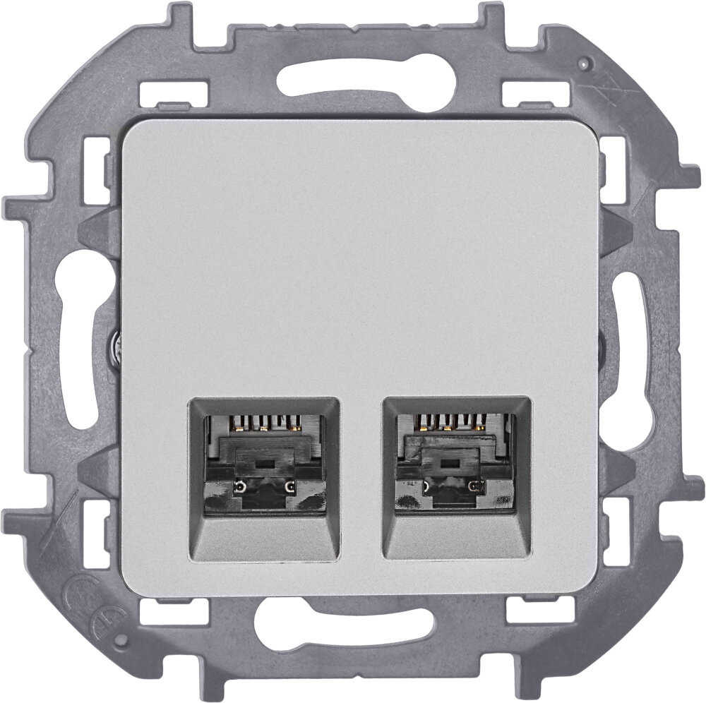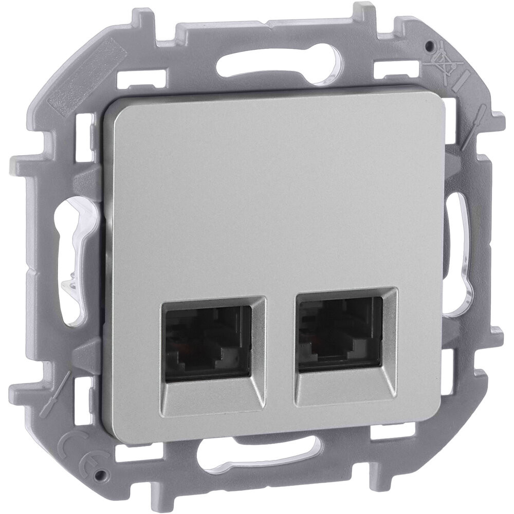 Розетка компьютерная двойная для скрытого монтажа Inspiria, 2 разъема RJ45 категория 6 UTP, цвет Алюминий. Предназначена для быстрого подключения персональных компьютеров, принтеров, роутеров и другого оборудования к информационным сетям категории 6 со скоростью передачи данных 1 Гб/сек. Подходит для использования в сетях категории 5е. Возможно прямое подключение 2 устройств и 2 кабелей.
