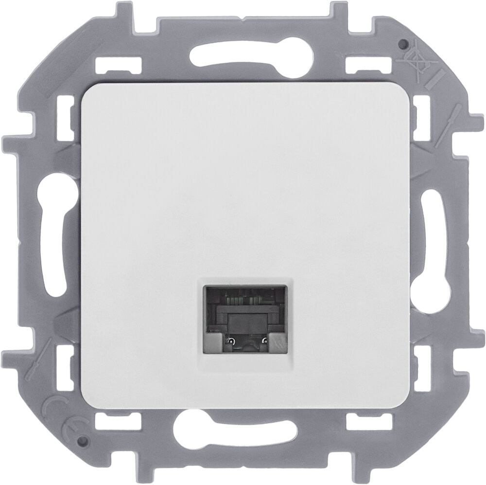 Розетка компьютерная для скрытого монтажа Inspiria, 1 разъем RJ45 категория 5е UTP, цвет ''Белый''. Предназначена для быстрого подключения персональных компьютеров, принтеров, роутеров и другого оборудования к информационным сетям категории 5е со скоростью передачи данных до 1000 Мбит/с. Возможно прямое подключение 1 устройства.