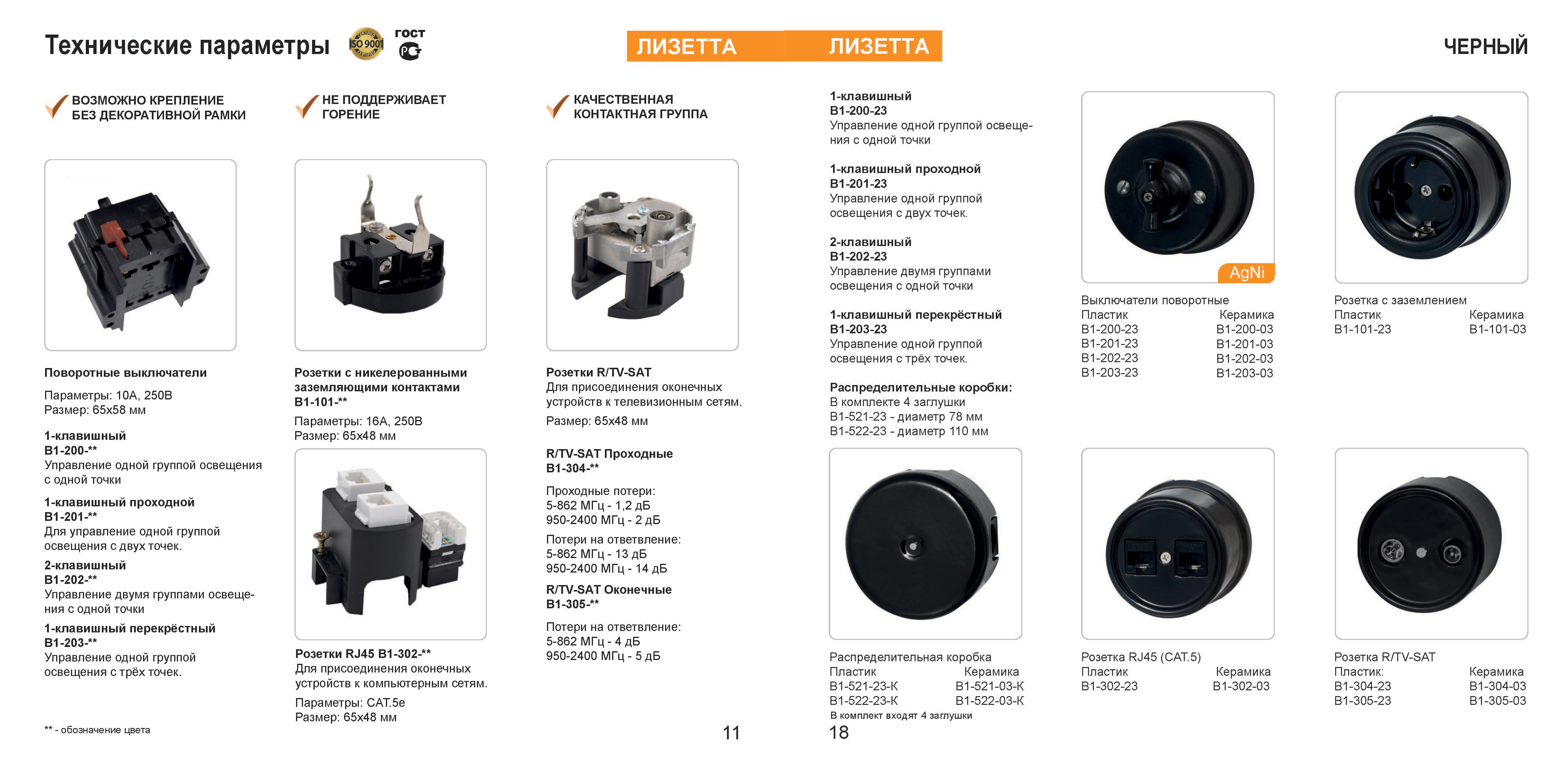 Полное описание товара Розетка R/TV-SAT оконечная, пластик, цвет Черный (Bironi) B1-305-23