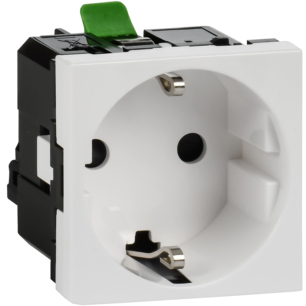 Розетка электрическая штепсельная с безвинтовыми зажимами предназначена для присоединения однофазных электрических потребителей к сети переменного тока напряжением 250В~ и частотой 50/60 Гц. Розетка поставляется с лицевой панель и устанавливаются в кабель-каналы DLP и Metra посредством соответствующих суппорт-рамок и в систему организации рабочих мест (лючки и колонны). Цвет: белый.