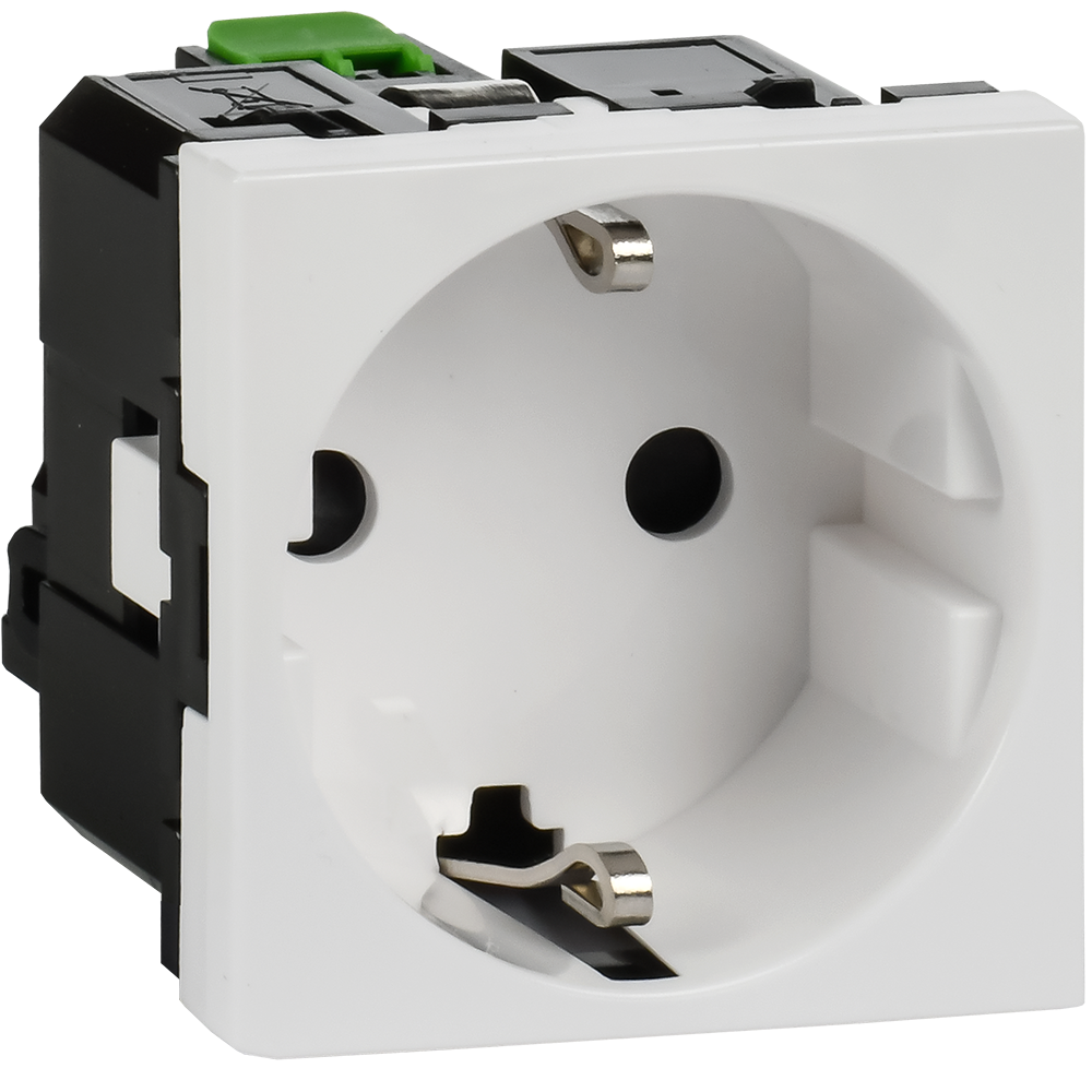 Розетка электрическая штепсельная с безвинтовыми зажимами предназначена для присоединения однофазных электрических потребителей к сети переменного тока напряжением 250В~ и частотой 50/60 Гц. Розетка поставляется с лицевой панель и устанавливаются в кабель-каналы DLP и Metra посредством соответствующих суппорт-рамок и в систему организации рабочих мест (лючки и колонны). Цвет: белый.