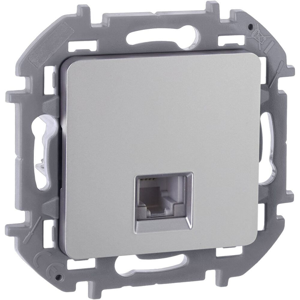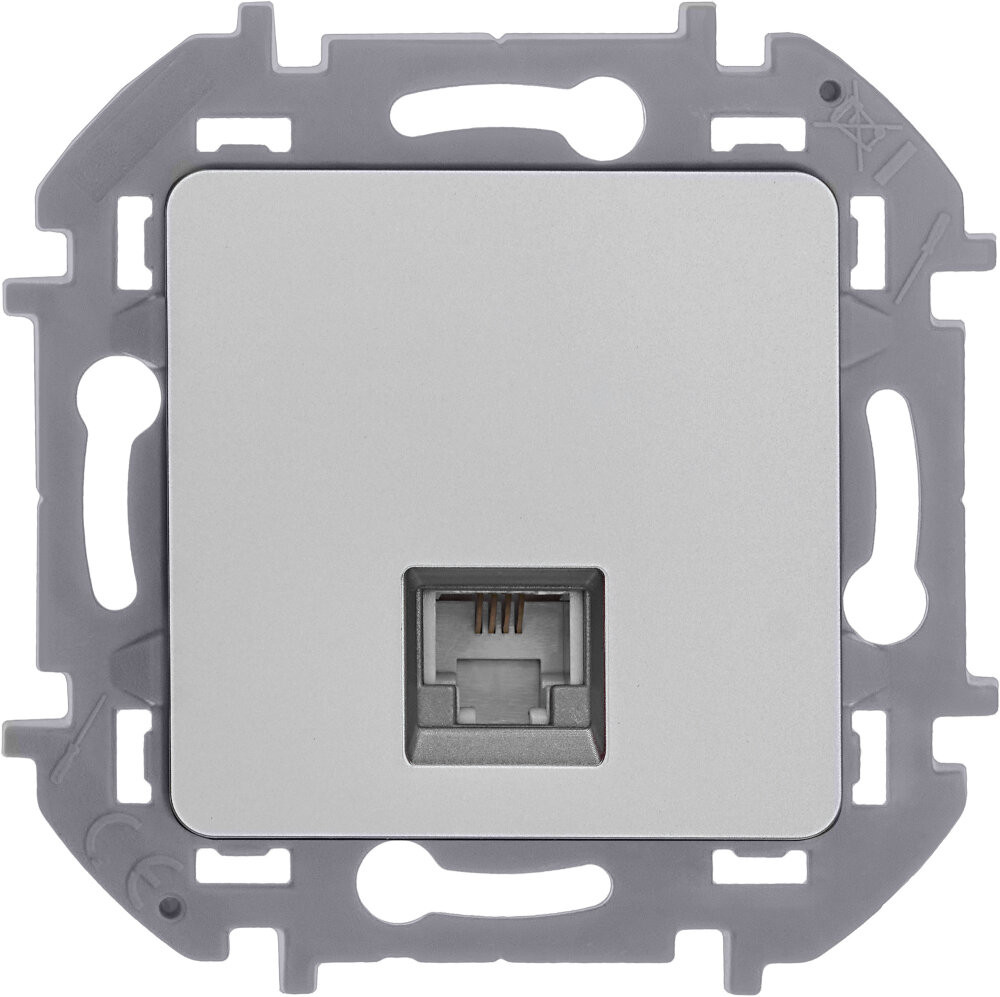 Розетка телефонная для скрытого монтажа Inspiria, разьем RJ11, цвет ''Алюминий''. Применяется для быстрого подключения к сетям телекоммуникаций (например, к телефонным сетям общего пользования).