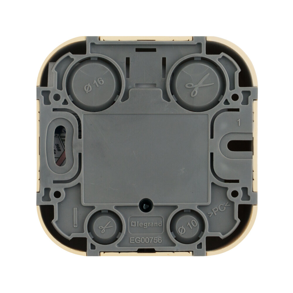 - Преимущества: Современный формат накладного монтажа|Механизм изготовлен из высококачественного поликарбоната, не проводит электрический ток, не поддерживает горение|Простое выравнивание изделий при установке в ряд, благодаря специальной форме основания|Корпус ударопрочный из пластичного полипропилена, стойкого к внешним воздействиям|Перфорация на корпусе для безошибочного вырезания отверстий при монтаже открытой проводки|В основании преднарезаны 4 отверстия для подвода кабеля при монтаже скрытой проводки