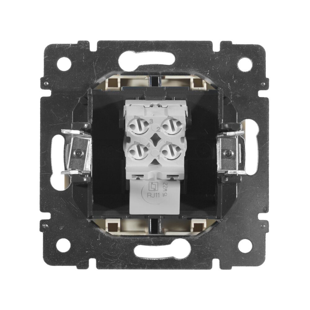 - Преимущества: Присоединение телефонного кабеля к розетке не требует специального инструмента|Надежность контактов обеспечивается техникой быстрого соединения: поворотом самозачищающих клемм на 1/4 оборота|Конструкция предусматривает возможность параллельного соединения двух и более розеток|Лицевая панель изготовлена из прочного глянцевого поликарбоната, стойкого к механическим воздействиям, выгоранию и загрязнениям