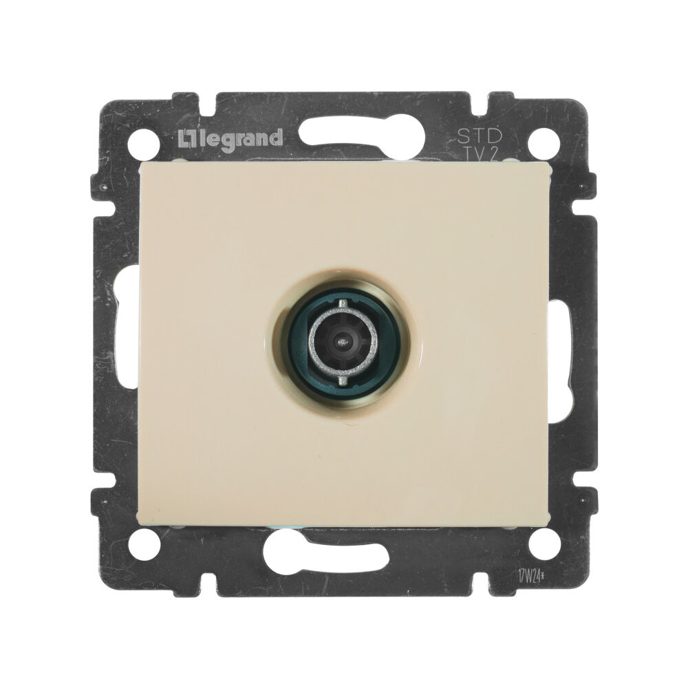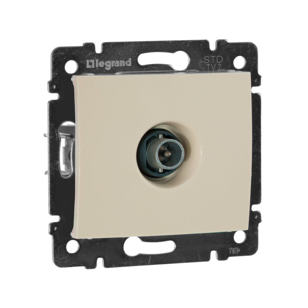- Преимущества: Механизм изготовлен из металлического сплава и защищает соединение от электромагнитных помех|Присоединение коаксиального кабеля к розетке осуществляется удобным безвинтовым коннектором|Подходит для цифрового TV-вещания|Лицевая панель крепится на защёлках|Материал лицевой панели, глянцевый поликарбонат, стоек к выгоранию и загрязнениям