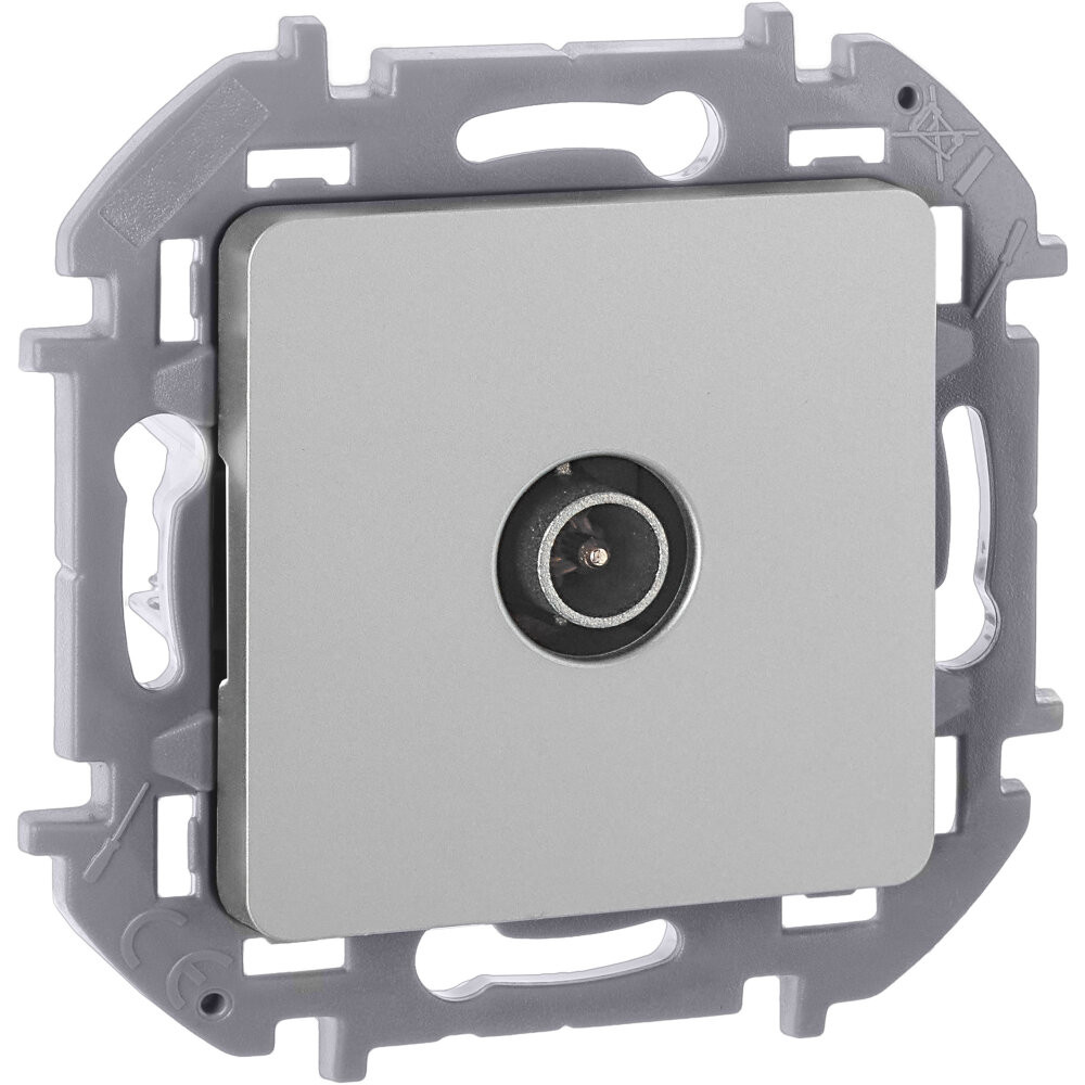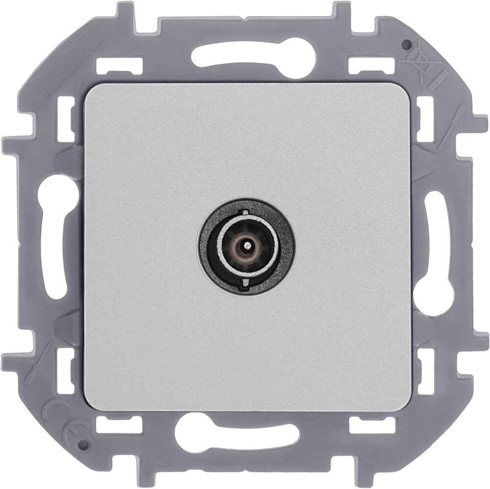Розетка телевизионная для скрытого монтажа Inspiria, проходная для схемы ''шлейф'', затухание 14дБ, 4-862МГц, цвет ''Алюминий''. Предназначена для подключения нескольких ТВ приемников к антенне и используется в схеме ''шлейф''. Устанавливается в линии между антенной и оконечной розеткой.