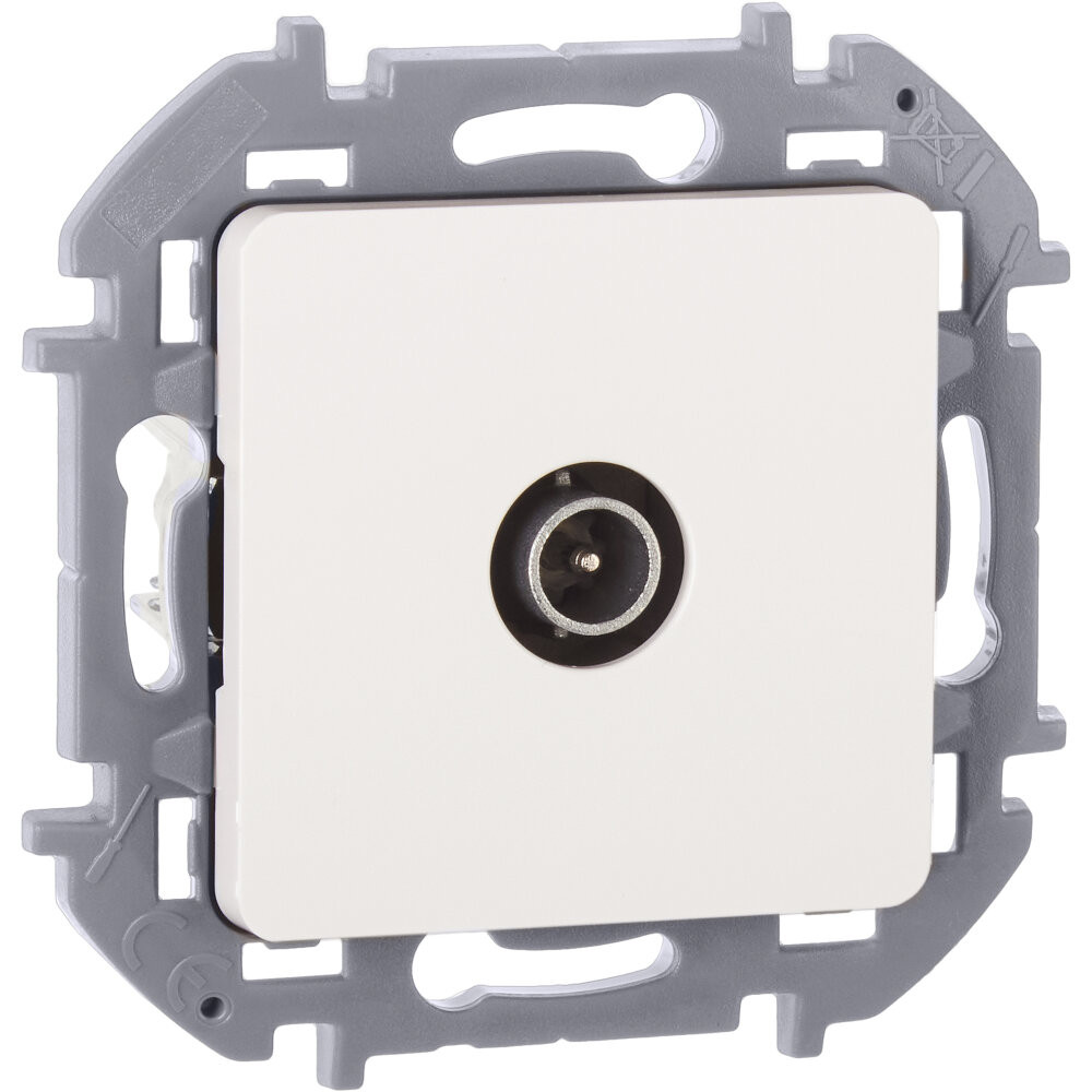 Розетка телевизионная для скрытого монтажа Inspiria, проходная для схемы ''шлейф'', затухание 14дБ, 4-862МГц, цвет ''Белый''. Предназначена для подключения нескольких ТВ приемников к антенне и используется в схеме ''шлейф''. Устанавливается в линии между антенной и оконечной розеткой.