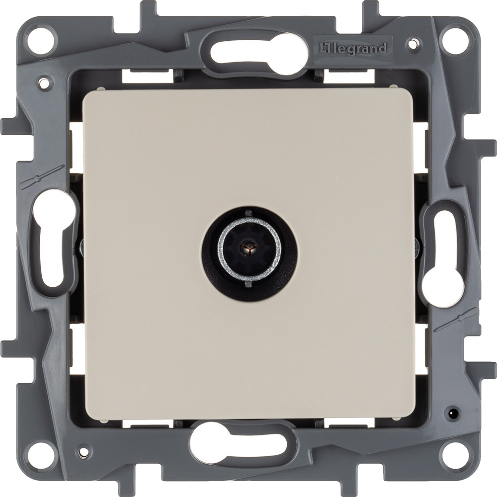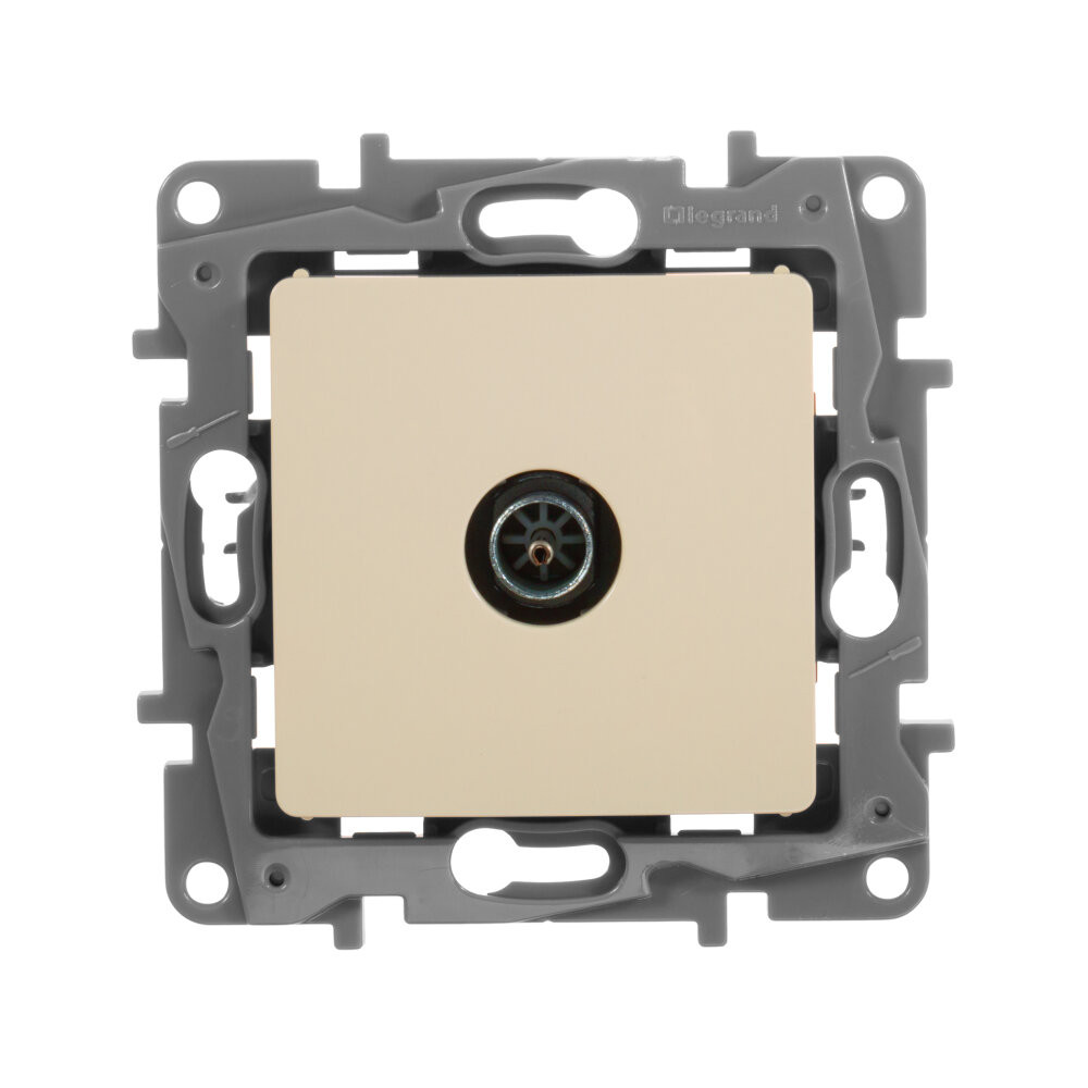 TV-розетка тип ''звезда'' ETIKA.Используется для подключения одного ТВ приемника к антенне, а также для организации телевизионной сети по схеме ''звезда'', когда к каждому телевизору прокладывается своя линия от источника сигнала.